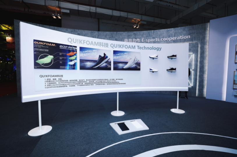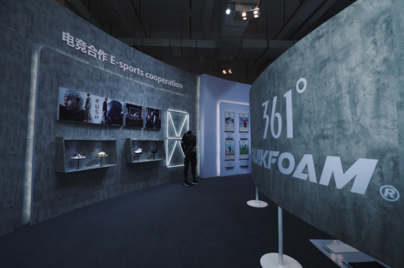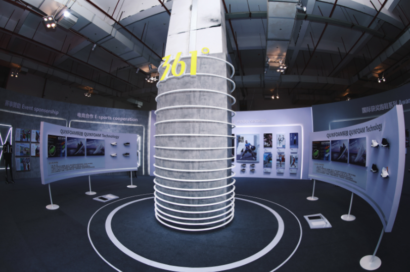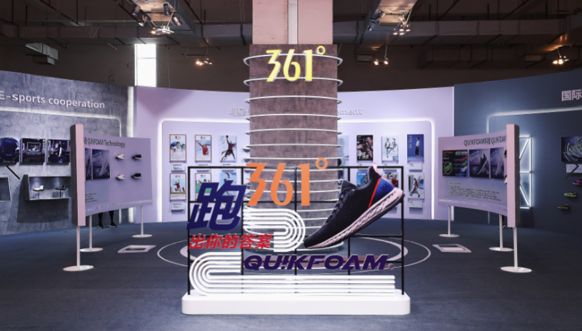 除QU!KFOAM科技中心形象展区与国际获奖跑鞋系列展区,361°展位还设有赛事赞助区、明星代言展区及电竞合作展区。