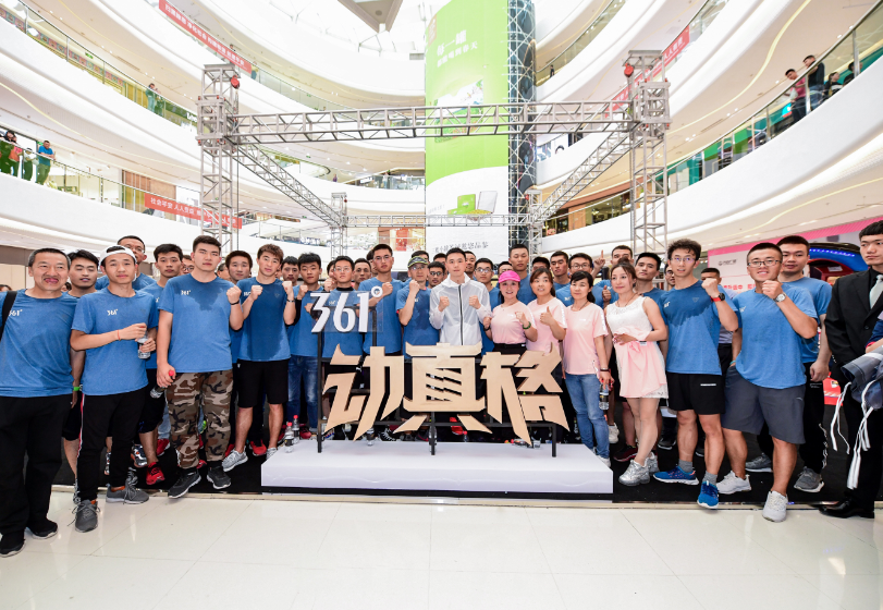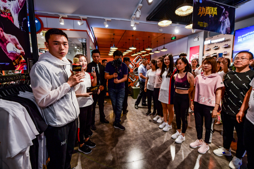 注:361°品牌代言人徐灿化身明星店长,现场展示其同款夺冠领奖T恤