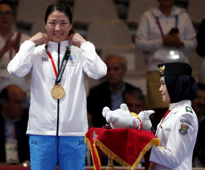 蒙古作为马背上的民族,在摔跤项目拥有绝对实力,本届亚运会上获得3枚金牌的优异成绩。在拳击、50米步枪项目,蒙古运动员也勇于挑战,最终拿下了2枚价值连城的金牌。全国人口只有300多万的蒙古,体育事业发展较为滞后,不少参赛运动员都并非专业出身,运动只是兼职。但是,对于传统体育项目数百年来的坚持和热爱,让蒙古在参与过的每一届亚运会上都有金牌入账。本届雅加达亚运会,在361°专业装备和运动精神的鼓舞下,蒙古代表团拿下的5金9银11铜、总共25枚奖牌的战果,创造了自蒙古1974年参加亚运会以来单届大赛的最好成绩。