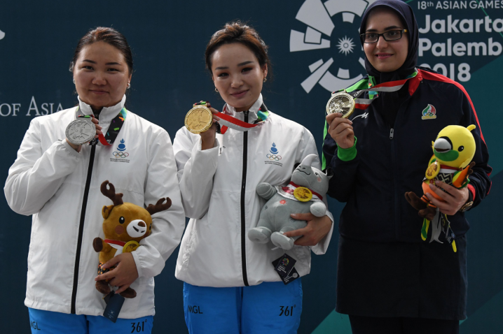 361°支持的蒙古代表团在亚运会女子50M步枪三姿中斩获金牌和银牌