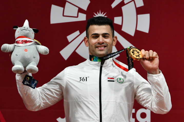 伊拉克举重运动员Safaa Al-Jumaili在361°支持下,获得男子举重86KG级冠军