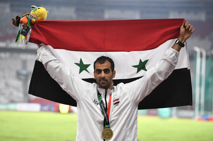 亚运赛场上,金牌固然荣耀,但是运动员为每一点进步所付出的努力和坚持,同样弥足珍贵。在8月27日男子跳高决赛中,叙利亚运动员Majededdin Ghazal以2米24的成绩获得第三名,为叙利亚在雅加达亚运会上拿下第一枚奖牌。已经31岁高龄的Majededdin Ghazal,与20岁出头的年轻对手们同场竞技,丝毫不显疲态,反而多了老将的大气和从容。作为叙利亚的传奇运动明星,Majededdin Ghazal是目前为数不多坚持在叙利亚首都大马士革训练的运动员,他日常训练的体育场还曾遭遇过炸弹袭击。但是对祖国的热爱,对跳高运动的热爱,让他无惧年龄增长,克服环境的艰险,一次次冲刺、起跳、翻身、落地。
