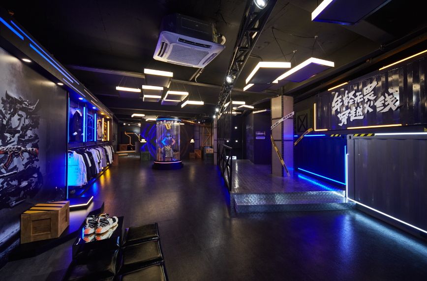 361°电竞运动主题店位于云南昆明南屏街,共设有三个楼层。在三楼电竞主题楼层,琳琅满目的CF元素完美还原穿越火线战场场景,超大尺寸电竞赛事高清屏幕,为广大电竞爱好者提供舒适的沉浸式竞技体验。作为全国首家电竞运动主题店,361°电竞运动主题店开创了一个集电竞、互动、展示、售卖、体验、观赛、新零售等功能于一身的主题门店新形态,牢牢地抓住年轻群体的注意力。未来,361°电竞运动主题店还将开展每日周赛等线下活动,使电竞和赛事属性成为门店标签,打造门店&俱乐部二合一的电竞线下俱乐部。