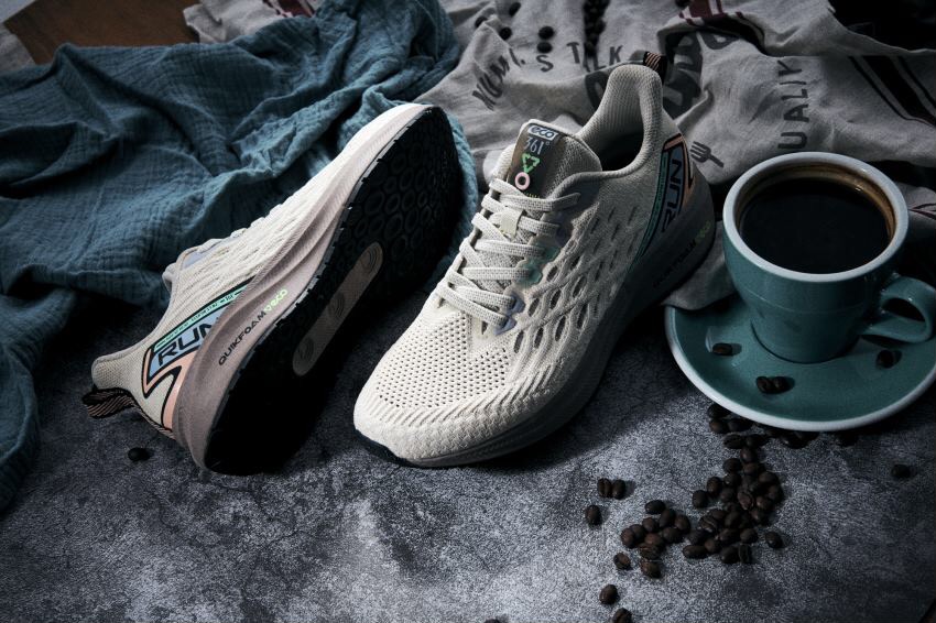 Q弹净界和Q弹猛甲,从鞋面到鞋底均采用环保材质而成,绿色低碳。其中,鞋的中底采⽤环保可回收咖啡渣打造,创新环保之外,更是给予极致回弹和舒适体验。
