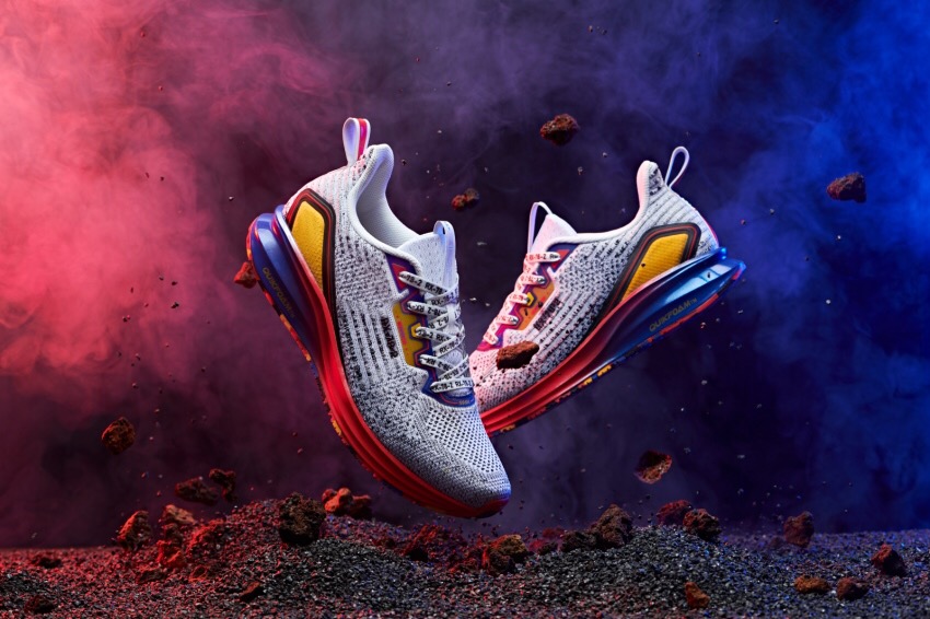 Q弹钛速,采用QU!KFOAMTM材质,弹感舒适,加以幻彩渐变色,具有更强烈的视觉冲击感,全掌橡胶大底,防滑耐磨。高达联名加持,幻彩金属喷漆,生动还原原著作漫画形象特点。
