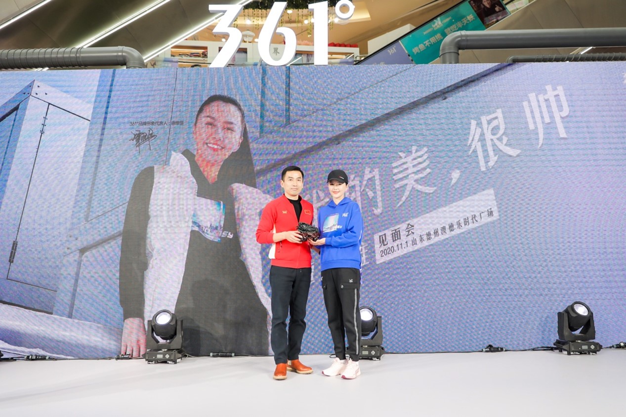 2020年11月1日,361°品牌形象代言人谭维维携品牌秋冬系列新品空降山东德州澳德乐见面会,并化身明星店长与现场粉丝和消费者一同分享运动带来的乐趣,解锁帅气的美。作为中国领先体育品牌,361°希望通过“我的美,很帅”的主题,鼓励更多消费者,尤其是女性消费者,通过运动,坚持热爱,不断探求自我,做真实而自信的自己。