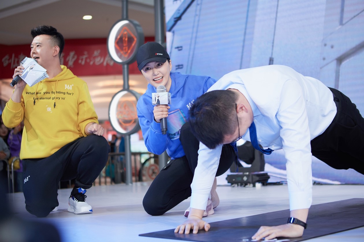 在粉丝互动环节中,维维还热情地邀请了2名现场粉丝进行健身PK大比拼。谭维维一边指导动作注意要点并为粉丝加油打气,能与偶像近距离接触,消费者热情高涨,现场气氛推向燃点。