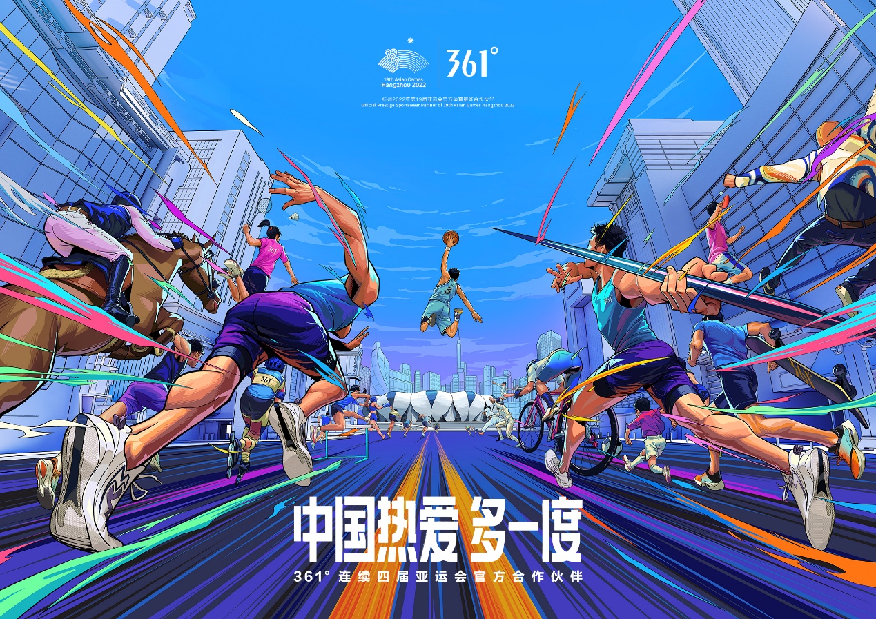 361°成立于2003年,于2009年在香港成功上市。作为中国领先体育用品品牌,361°以“专业化、年轻化、国际化”为核心基因,拥有包括产品研创、生产制造、渠道零售、市场行销等在内的端到端全产业覆盖能力,致力以高价值、多品类的体育运动产品,将“多一度热爱”的品牌精神传递给更多消费者。作为首个赞助奥运会的中国体育运动品牌,361°全力支持2016年里约奥运会及残奥会,为世界体育贡献中国力量。从2010年广州亚运会到2022年杭州亚运会,361°连续四届成为亚运会官方合作伙伴,持续发挥品牌经验,打造亚运会独特的文化符号。