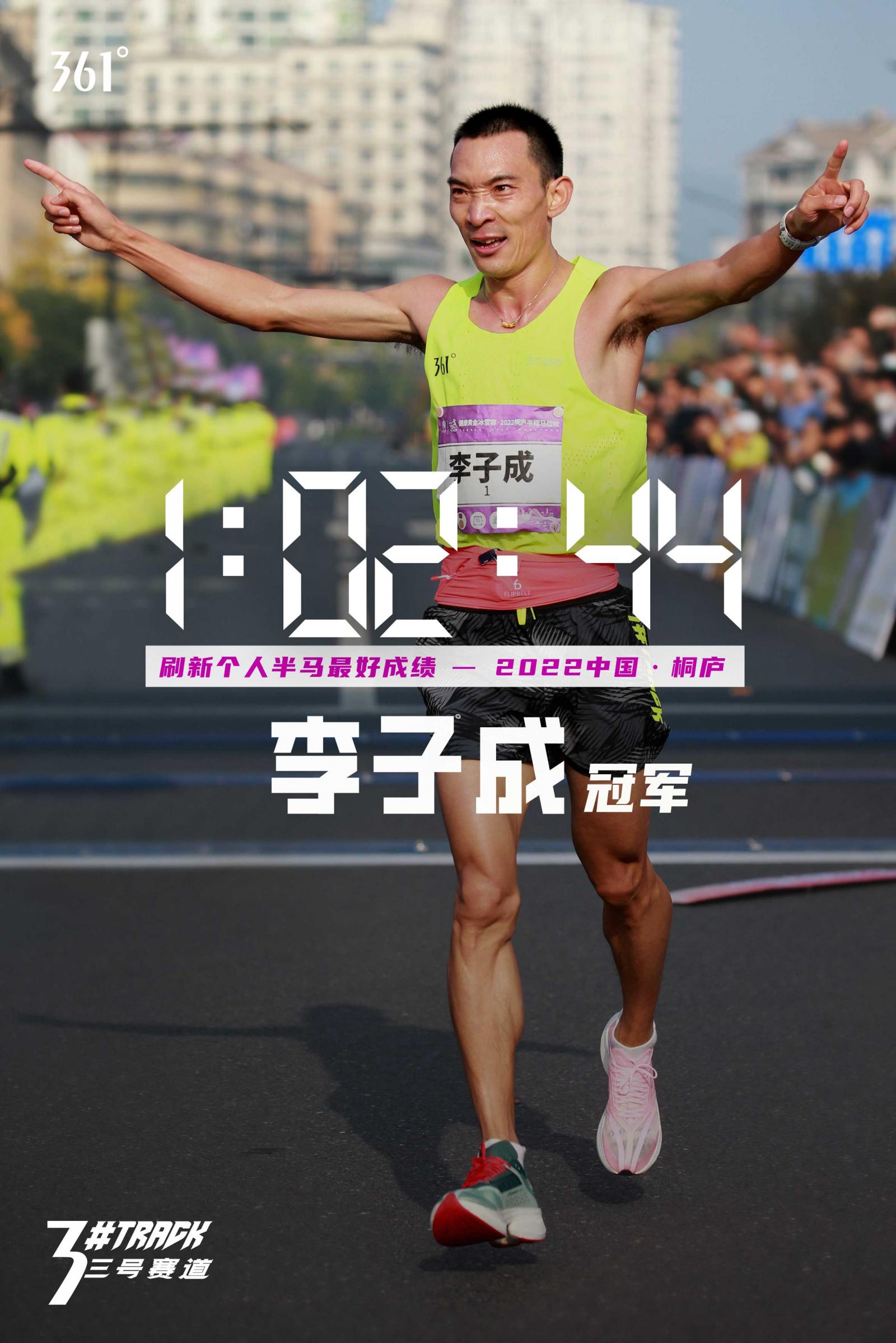 10月30日,刚刚结束的健康黄金冰雪容•2022桐庐半程马拉松,361°跑步代言人李子成状态极佳,上脚361°竞速碳板跑鞋——飞飚,以1小时2分44秒成绩夺冠,同时打破中国半程马拉松记录。