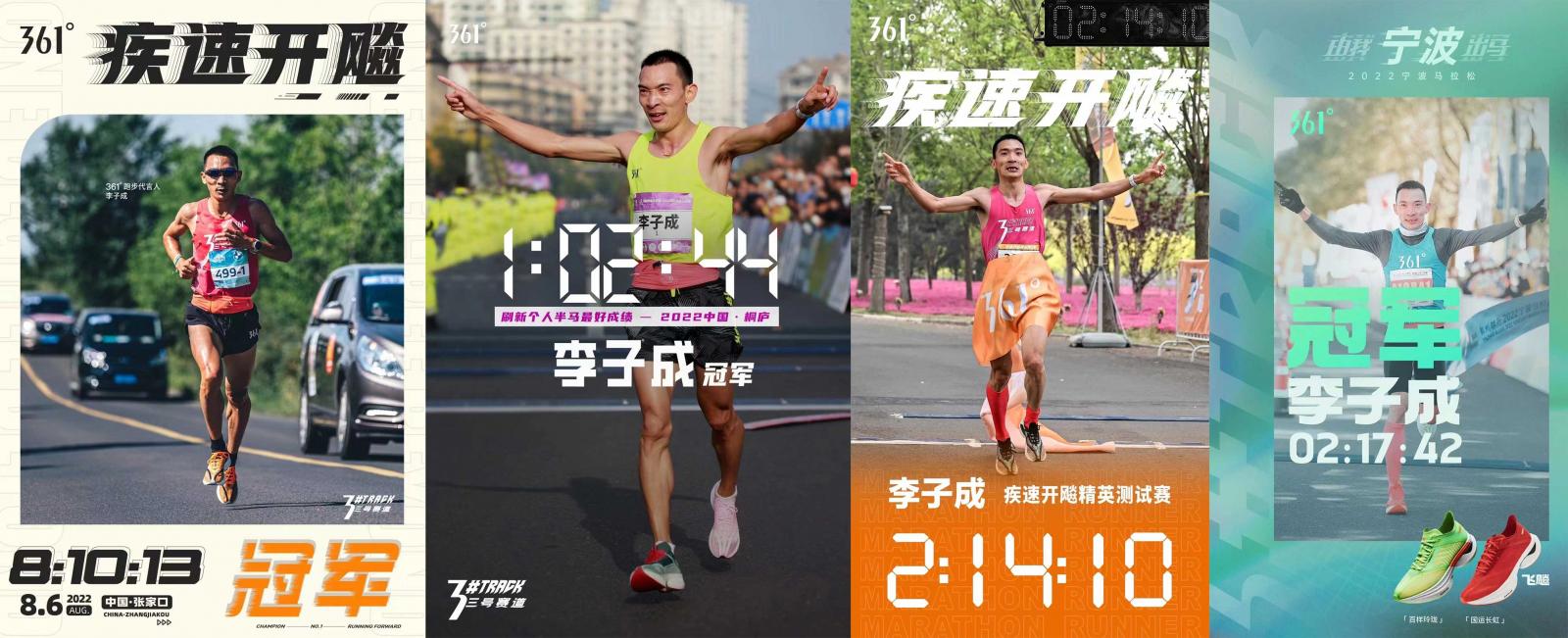 自年初发售以来,飞飚已多次助力跑者取得了优异成绩。8月,361°品牌代言人李子成上脚飞飚参与2022「越山向海」赛事,帮助其所在战队以8小时10分13秒的成绩夺冠。而在2022桐庐半程马拉松比赛中,得益于飞飚的加持,李子成以01:02:44的成绩获得男子组第一名,打破了当时的半马全国纪录。此外,在“宁波马拉松”“杭州马拉松”等赛事当中,飞飚也均有出色表现,帮助李子成、程乾育等众多跑者登上赛事领奖台。