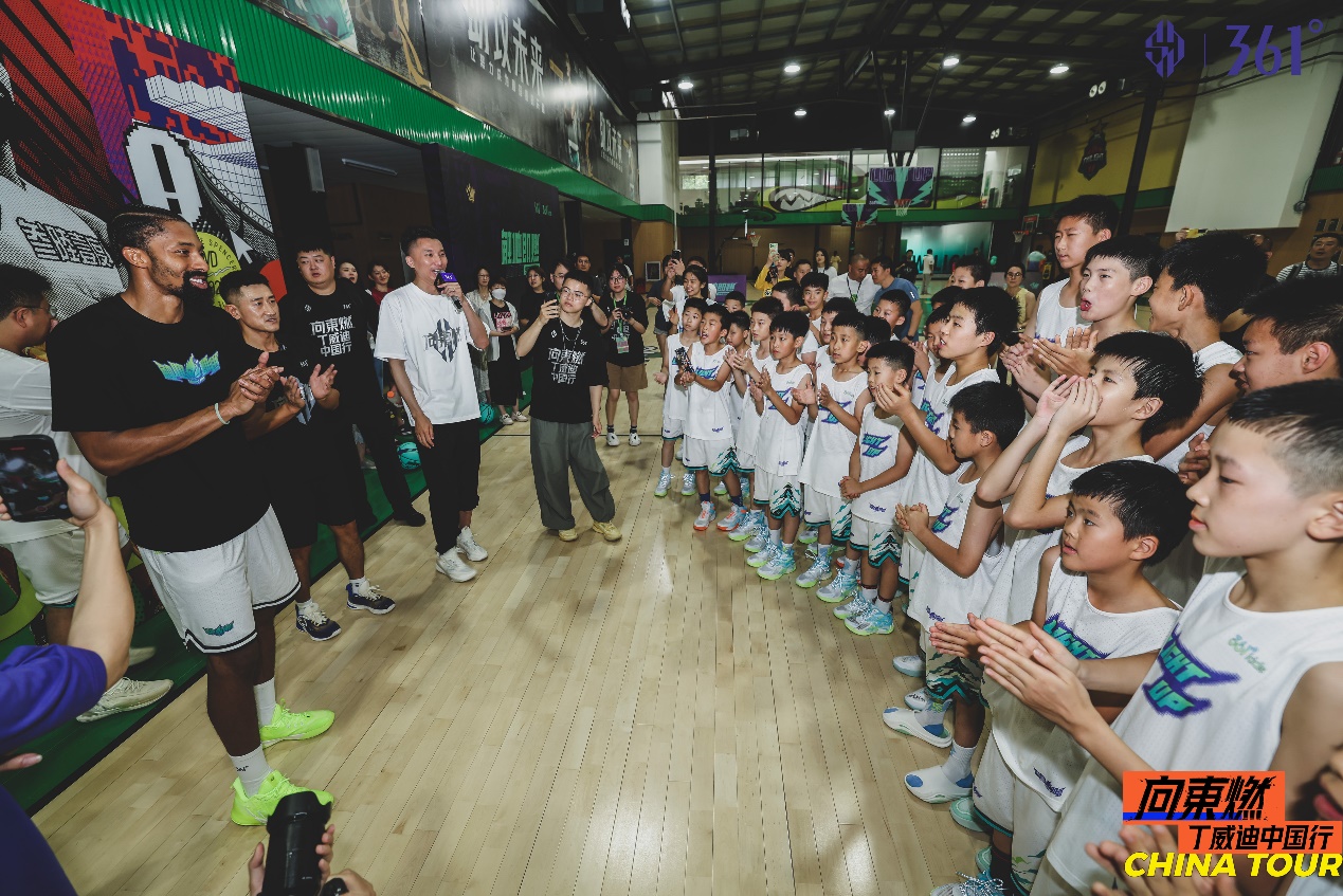 在沈阳的行程当中,丁威迪与草根球员韩曙光进行百分大战,激烈的比拼将现场气氛引向高潮。次日,丁威迪空降「触地即燃」全国赛-沈阳站现场,见证沈阳及周边城市草根球员的激烈对决。此外,为更进一步帮助球员们成长,丁威迪还到访位于济南的「触地即燃·少年篮球训练营」,与361°少年篮球总教练、知名青训专家吕晓明指导一起为孩子们授课,对他们的表现进行点评。