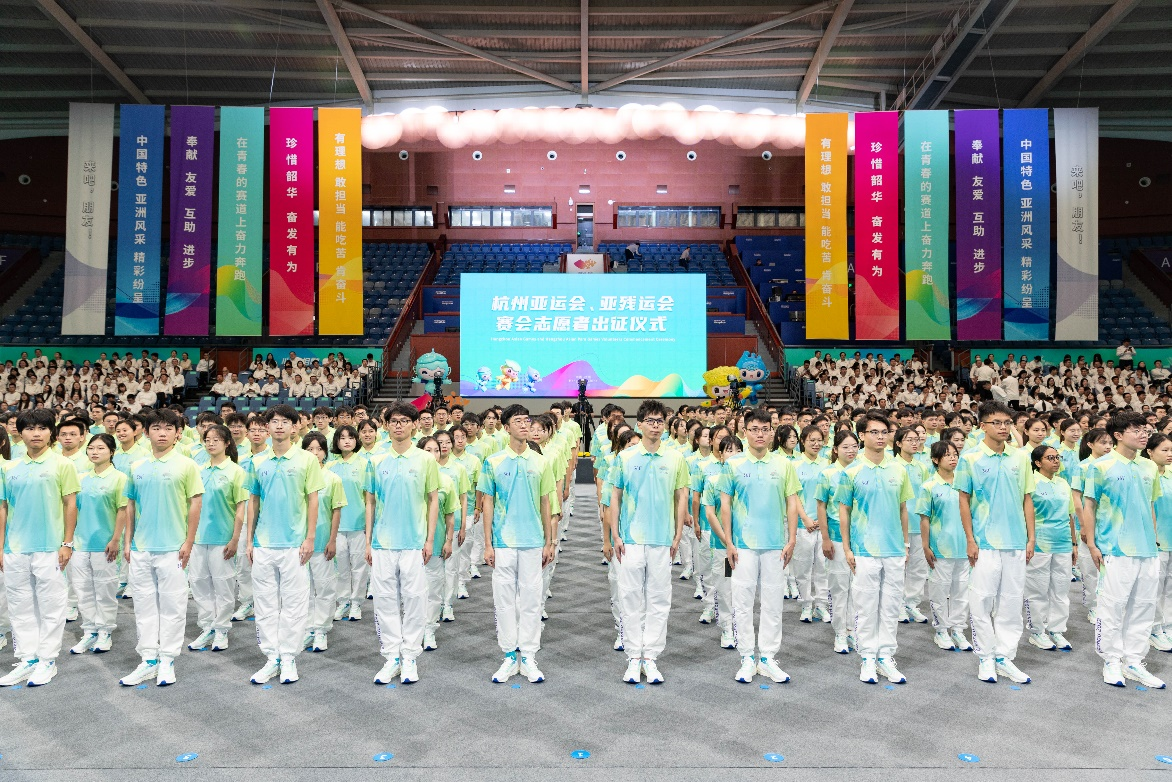 8月24日,杭州亚运会倒计时30天,杭州亚运会、亚残运会赛会志愿者出征仪式在浙江大学紫金港校区体育馆举行。1800名“小青荷”赛会志愿者代表,在现场向全世界发出邀约——“来吧,朋友!”作为连续四届亚运会官方合作伙伴,361°携全球品牌代言人龚俊向“小青荷”们倾情致敬,陪伴志愿者们率先到场。361°将以专业的赛事服务水平助力杭州亚运会筹备工作,赋能中国体育事业发展。