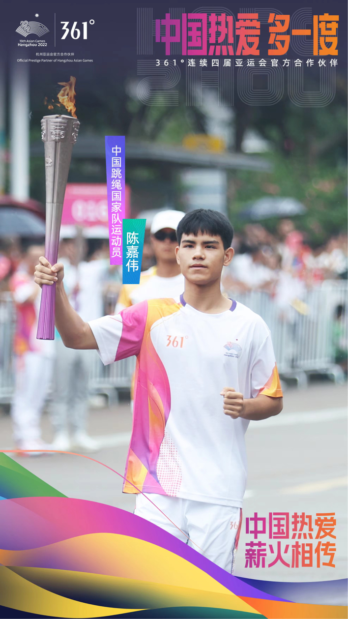 篮球名宿吕晓明、跳绳新星陈嘉伟作为各自领域的专业运动员,也在杭州亚运火炬手之列。他们以矫健的身姿,携手361°将“中国热爱”传递给下一棒。