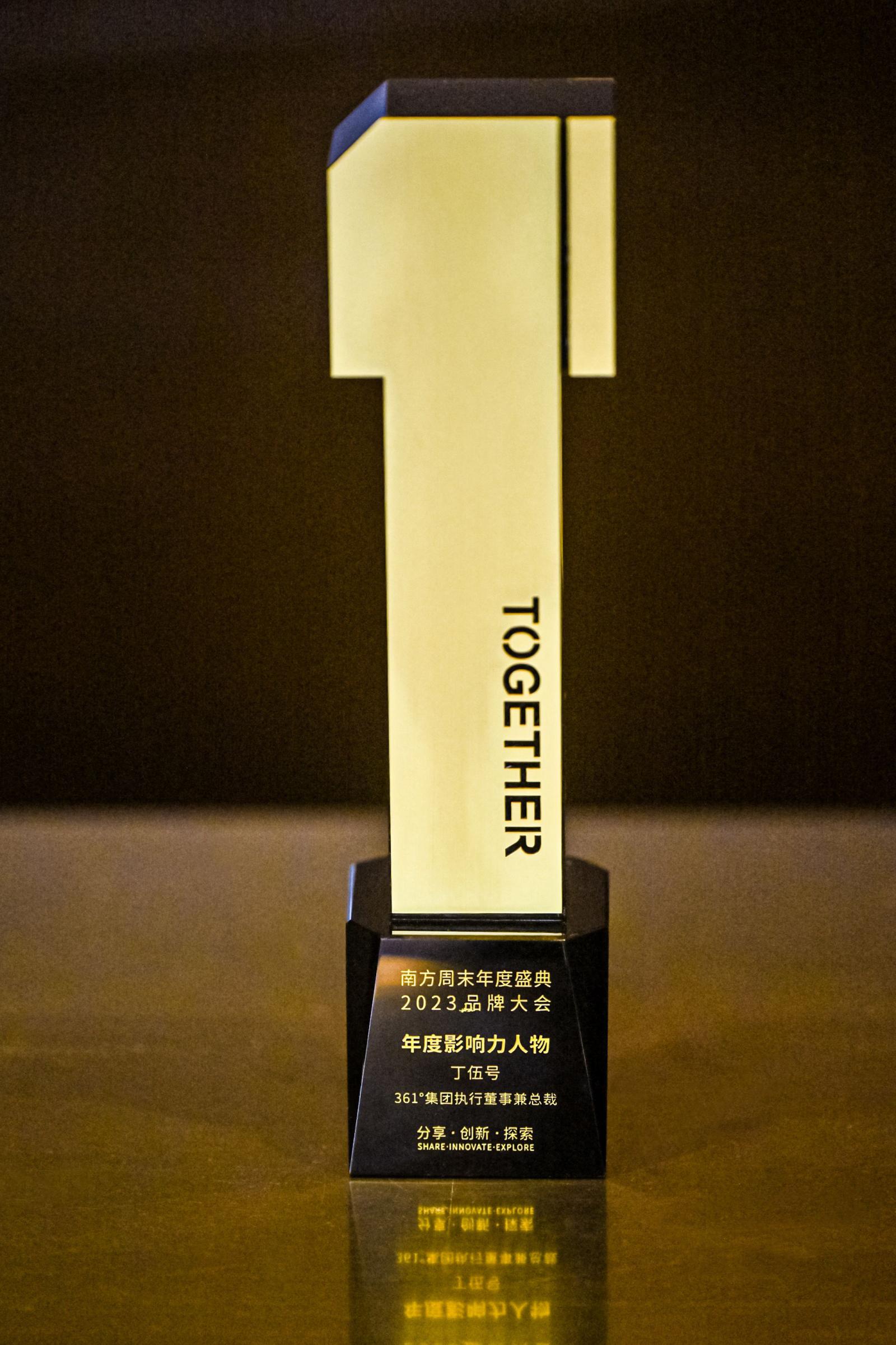 12月8日,南方周末年度盛典2023品牌大会在北京举行,361°集团执行董事兼总裁丁伍号凭借其卓越的领导能力以及在体育事业领域的深远贡献,荣获“年度影响力人物”奖项。