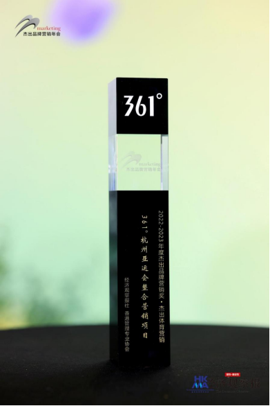 12月13日,由《经济观察报》联合香港管理专业协会主办的“2022-2023年度杰出品牌营销年会”在北京顺利举行。经过多轮评审,“361°杭州亚运会整合营销项目”从百余个参赛案例中脱颖而出,荣获“2022- 2023年度杰出品牌营销奖·杰出体育营销”奖项。