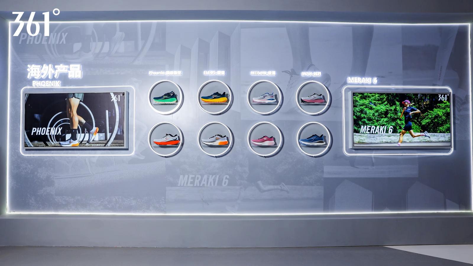 在海外展区,屡获佳绩的361°海外线专业跑鞋也集体亮相,包括LYNX、MERAKI等多款热销尖货。361°致力于在多种设计风格和材质工艺上适配全球各地跑者的不同需求,目前海外门店遍及全球各地,2023年旗下尖货CENTAURI更是荣获美国权威杂志《跑者世界》2023五双最佳跑步训练鞋之一。近期361°海外网站也成功上线,标志着国际化布局的进日趋完善,进一步夯实361°国际化的品牌定位,提升其在国际上的影响力。