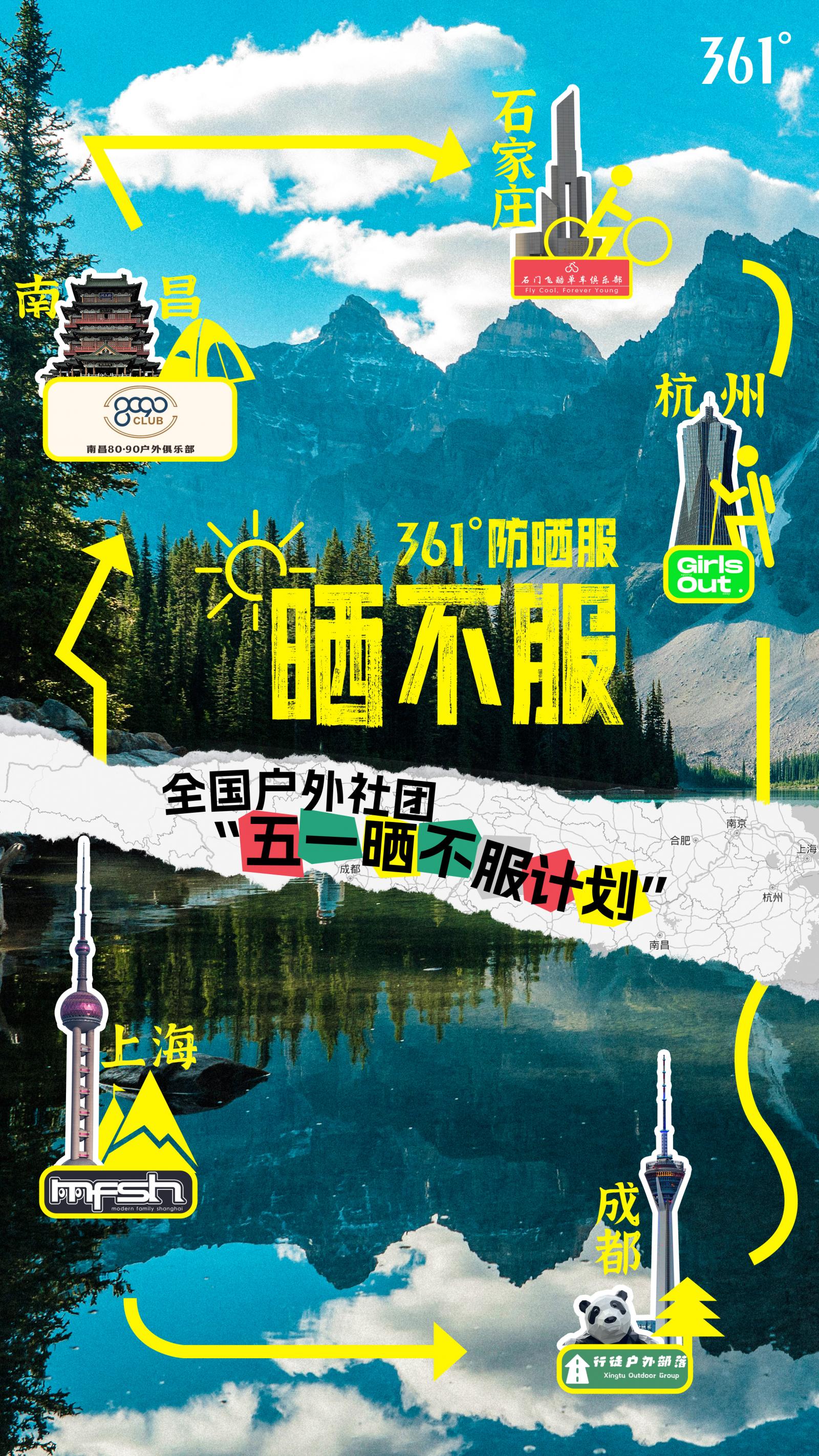 361°布局泛户外领域的野心,不止体现在产品矩阵的创新研发上,在传播渠道及手段上,也可见一斑。五一小长假期间,361°联合全国户外社团,多城同步发起“五一晒不服计划”,招募并成功吸引了上百名户外运动爱好者参与。