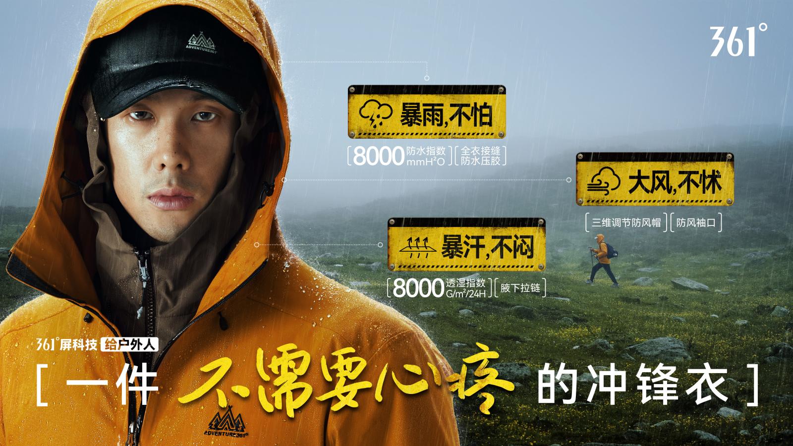 随着户外运动热潮的兴起,越来越多的人开始追求健康且充满活力的生活方式。361°敏锐洞察消费趋势,运动潮流线“轻野系列”旨在打破传统户外装备的时间与空间局限,以户外轻量化、生活化的产品设计,满足消费者在户外多场景的穿着需求,传递“大世界 轻野行”的品牌主张。361°以“屏科技”为核心,推出了该系列新一季主打高性能与轻量化的户外产品,其中,御屏冲锋衣作为尖货款,凭借其卓越的产品性能和亲民的价格,成为轻户外爱好者心中的新宠。