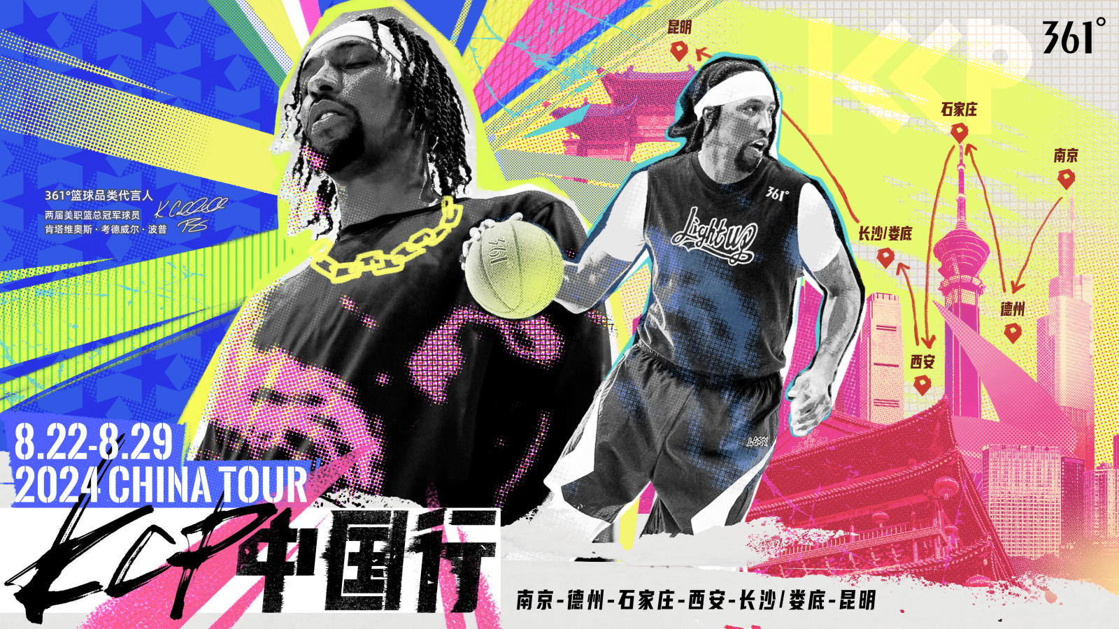 北京时间8月29日,随着昆明站活动的顺利结束,361°篮球品类代言人肯塔维奥斯·考德威尔·波普(KCP)的首次品牌中国行画上了圆满的句号。在这为期8天的行程中,波普共造访南京、德州、石家庄、西安、长沙、娄底与昆明7座城市,并作为首位亲临触地即燃总决赛现场的美职篮球员与广大球迷、361°的消费者们进行了友好的互动,共同交流对篮球文化的热爱。