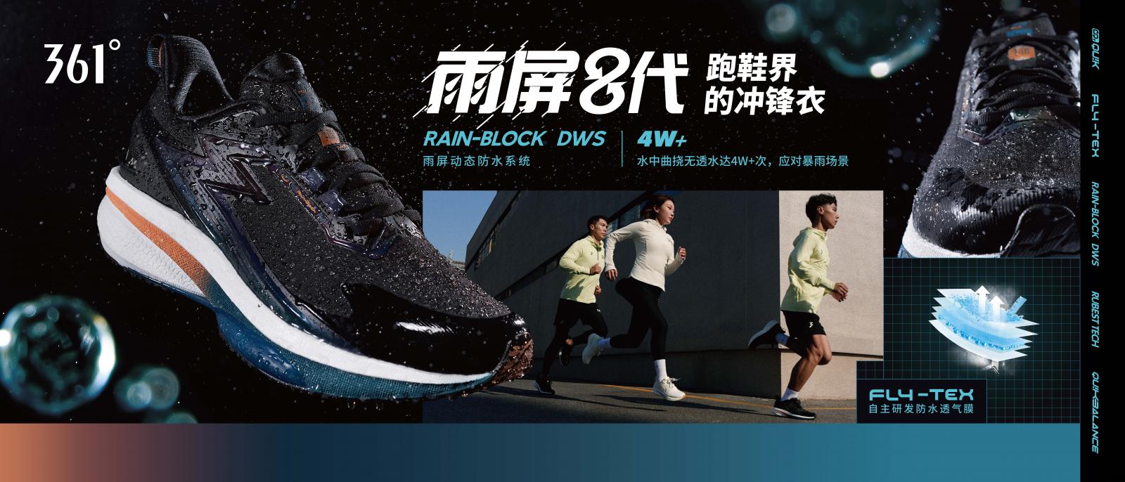 他们介绍到,雨屏8代跑鞋在继承前代产品优秀性能的基础上,进行了全面的升级和优化。所搭载的FLY-TEX防水透气膜科技,技术灵感源自鸟类羽毛的卓越疏水与透气性能,把FLY-TEX防水透气膜巧妙地复合于面料内层,实现了有效阻挡外部水分侵入,确保防水性能的持久稳定。以及迅速将人体产生的热量与湿气排出体外,保持内部环境的干爽舒适的双重功效。
