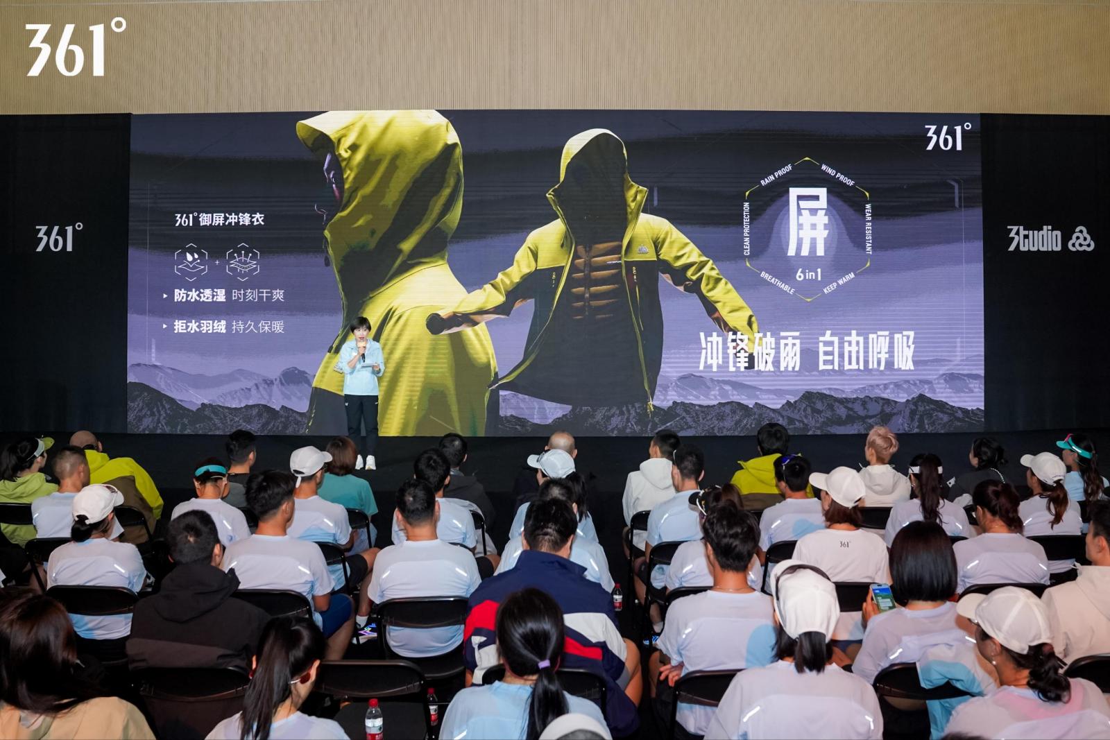 随着近些年户外运动市场的快速升温,361°以独特的竞争优势,不断深耕这一细分领域,用新技术和新产品为用户带来更卓越的运动体验。发布会现场,361°服装产品中心总经理刘秋华分享了361°近年在户外赛道的钻研与探索,并阐述了屏科技在“御屏2.0冲锋衣”上的应用。