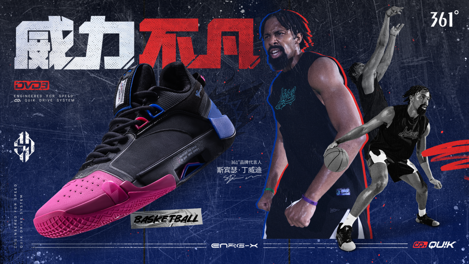 北京时间1月18日,361°联手品牌代言人、NBA球星斯宾瑟·丁威迪共同打造的第三代签名鞋DVD 3正式开售。产品自去年7月丁威迪中国行中的首次亮相后,便收获众多篮球爱好者的喜爱与期待。凭借此前DVD系列一代和二代的良好口碑,DVD 3的如期而至,满足了球迷们对后卫鞋产品性能的更高要求。