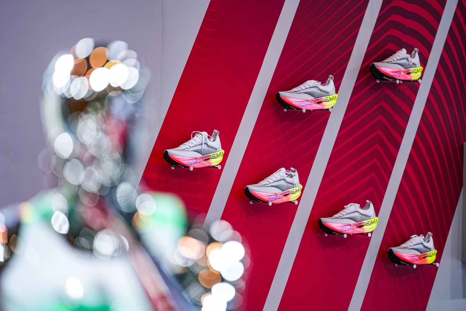 而另一款马博会的热门产品——飞燃4,则以"突破适配"为核心,通过立体曲面碳板与中底技术优化,降低竞速门槛,助力大众跑者向更高目标成绩突破。值得一提的是,飞飚Future 2的整鞋可回收设计与飞燃4的中底二氧化碳回收工艺,均将绿色科技融入竞速基因,彰显了361°在运动科技与可持续发展领域的积极实践。