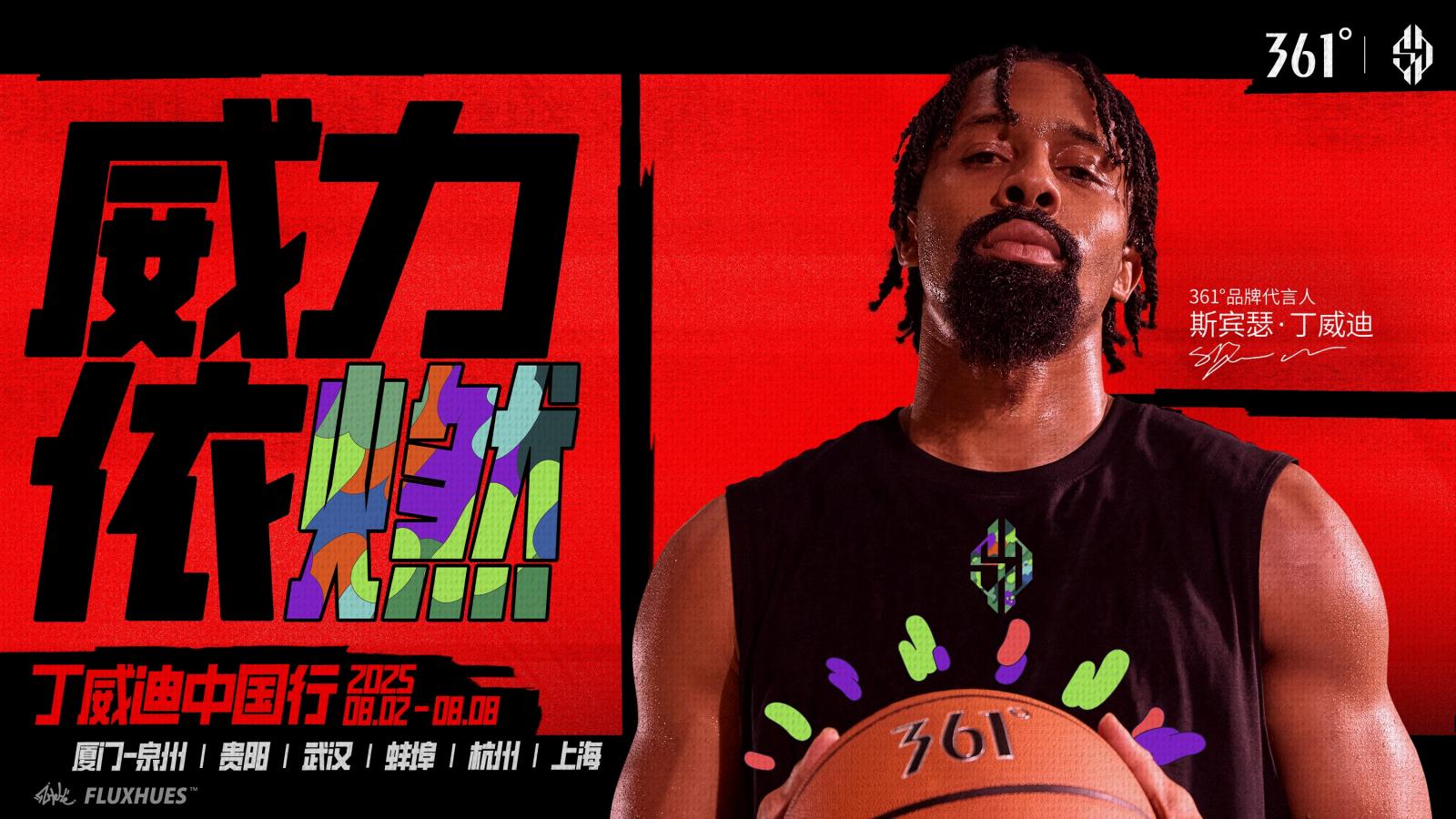 这个盛夏,威力依燃!备受中国球迷喜爱的361°品牌代言人斯宾瑟·丁威迪,即将于8月2日开启他连续三年的中国行。此次中国行将持续至8月8日,足迹遍及厦门、泉州、贵阳、武汉、蚌埠、杭州、上海,在多座城市与广大球迷再次见面,共度盛夏篮球盛宴。