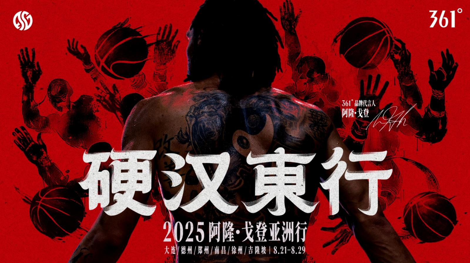 361°品牌代言人阿隆·戈登2025亚洲行定档,8月21日一起“硬汉东行”!