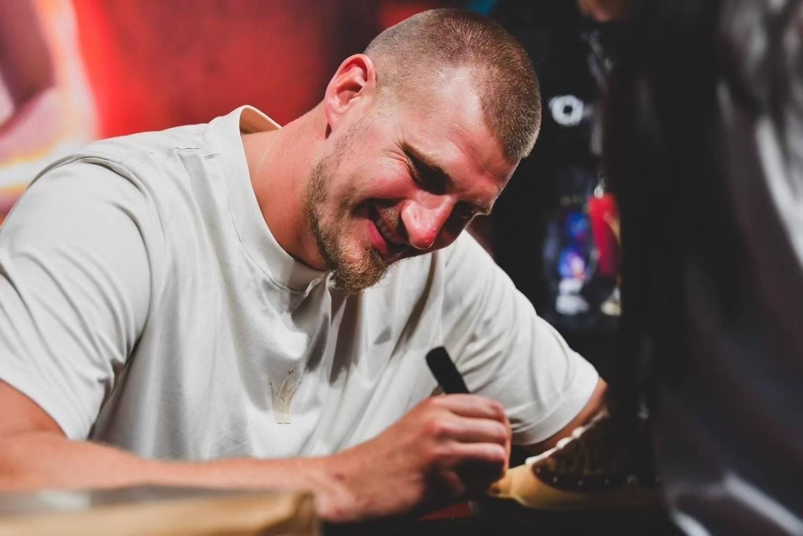 作为连接国际球星约基奇与本土球迷的重要桥梁,361°此次精心策划的中国行系列活动,为广大球迷创造了与偶像近距离互动的宝贵机会。在品牌门店,约基奇为守候已久的球迷签名并亲切合影,积极参与“王牌球局”等活动,展现出十足的亲和力。球迷们的热情与各项有趣的互动环节,共同将现场气氛推向顶点。尤为值得一提的是,特邀艺术家还赠予了约基奇一个以THE JOKER 1战靴改造的创意马头雕塑,这巧妙呼应了他钟爱赛马的鲜明个性。对此,这位MVP得主由衷赞叹道:“简直是巧夺天工的艺术品!”此次中国行的压轴高潮在北京站上演,尼古拉·约基奇作为特邀嘉宾亮相“触地即燃”全国赛北京站现场,为草根球员助阵,并与同行的哥哥内马尼亚·约基奇(Nemanja Jokić)进行了一场趣味投篮比赛,以自身行动诠释“篮球不会拒绝你”的品牌理念。